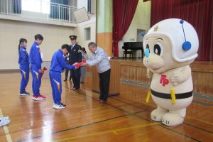 児童を「リュウピー・リュウミー交通保安官」に任命し、家庭で親や祖父母へ飲酒運転の防止を、また、ファミリー隊員(交通保安官の保護者)に、職場や地域で飲酒運転追放「三ない運動」をそれぞれ呼び掛けてもらうことにより、飲酒運転気運の醸成を図るものです。 ※「三ない運動」は誓いの言葉を参照してください。